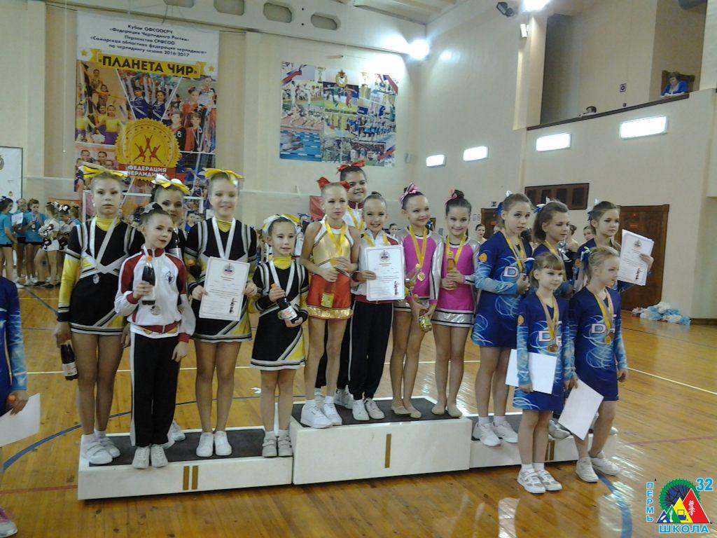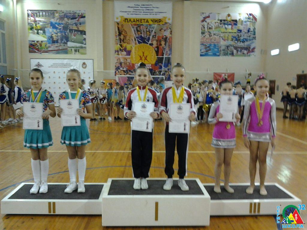 20 ноября в г. Тольятти состоялся Кубок России по черлидингу. Воспитанницы школы № 32 из 3Д класса достойно представили Пермский край на этих соревнованиях. Наши девочки привезли домой четыре призовых места, два из которых первые. Результаты таковы.