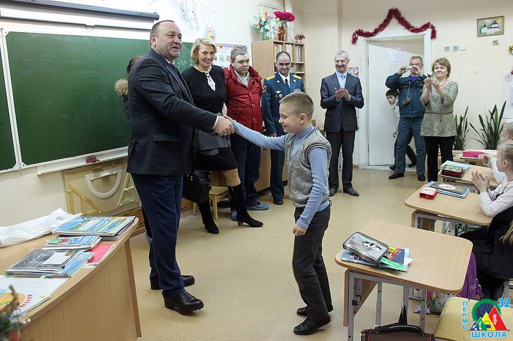 Ученика пришли поздравить глава администрации Ленинского района г. Перми С.И. Романов, который вручил Владиславу новую школьную форму; руководитель отдела образования Ленинского района Г.Ю. Козьмина и представители МЧС. Гости вручили мальчику благодарственное письмо и игрушечную пожарную машину, поблагодарили родителей мальчика за хорошее воспитание, учителя Великородных Наталью Ивановну и директора школы за важный вклад в образование учащихся по основам безопасности жизнедеятельности.