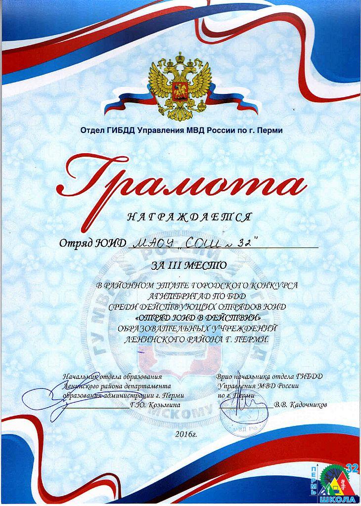 Приказом министра спорта РФ В.Л. Мутко за № 36нг от 20 апреля 2016 года Золотым знаком отличия Всероссийского физкультурно-спортивного комплекса «Готов к труду и обороне» (ГТО) награждается ученик 11 класса школы № 32 г. Перми Виталий Цаплин.