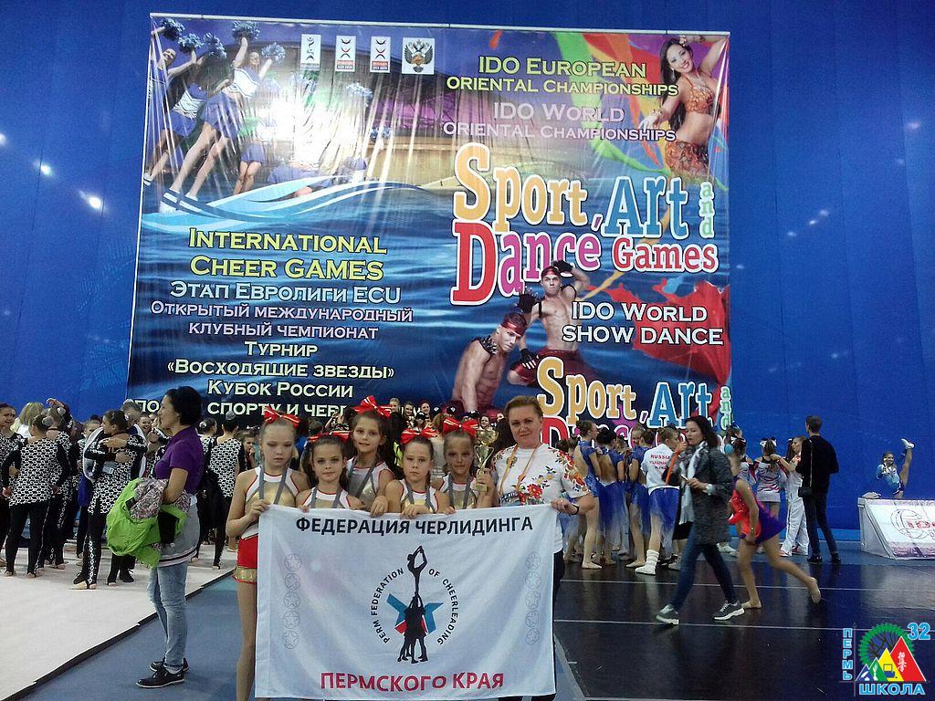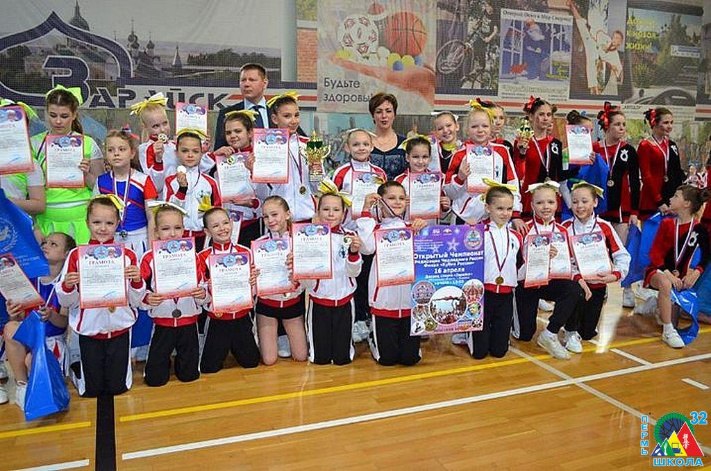16 апреля 2016 г. в г. Зарайске Московской области прошел Чемпионат федерации черлидинга России и финал Кубка России по черлидингу, в котором приняло участие более 400 спортсменов из 10 регионов РФ (Москвы, Московской области, Челябинска, Владивостока, Тольяти и других регионов страны). Наш Пермский край был представлен командой спортсменов, в состав которой входили 10 учениц нашей школы. Наши девчонки доказали, что они лучшие черлидеры, бойцы и просто красавицы. Они показали очень высокие результаты. Из Москвы мы привезли