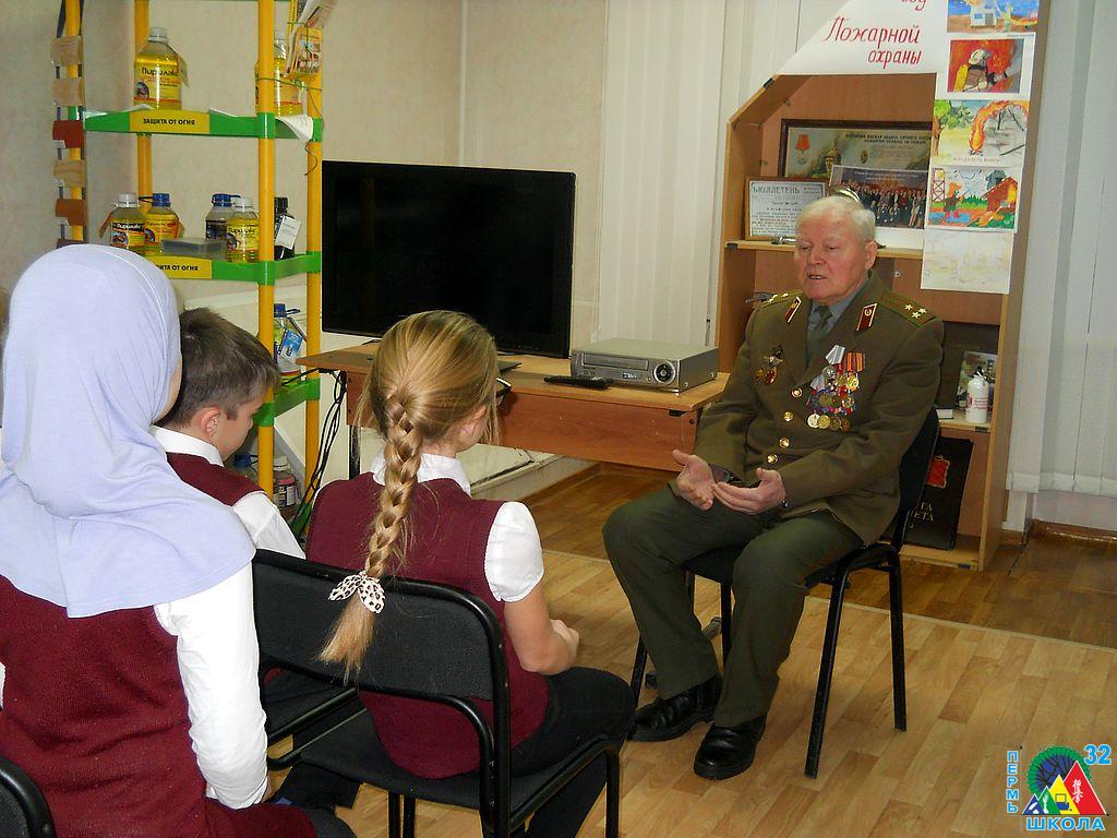 Учащиеся школы № 32 продолжают добрую традицию встреч с представителями различных подразделений ГУ МЧС России по Пермскому краю. 28 апреля в канун Дня пожарной охраны учащиеся 3А класса вместе с классным руководителяем Светланой Абриковной Зиннуровой и мамой учащихся Гаяне Радиковной Авдалян побывали в Пожарной части № 1 г. Перми. Здесь ребят встречал ветеран пожарной службы Михаил Ульянович Стряпунин.