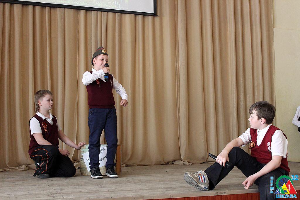Праздник Победы в Великой Отечественной войне один из самых важных и значимых в нашей стране. Мероприятия, посвященные этому дню, начинаются задолго до самой годовщины, не исключение и школа № 32. В этом году одно из самых крупных мероприятий «Победный май шагает по планете» прошло 5 мая, чествовали Победу в несколько этапов.