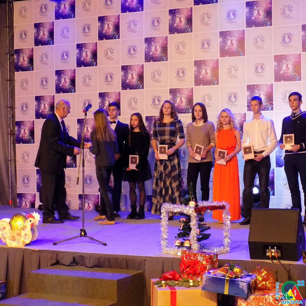 Значок Сережа получил из рук представителей департамента образования Перми, а дальше официальная часть встречи переросла в городской балл старшеклассников, где активные, сильнее и умные закружились в праздничном вальсе.