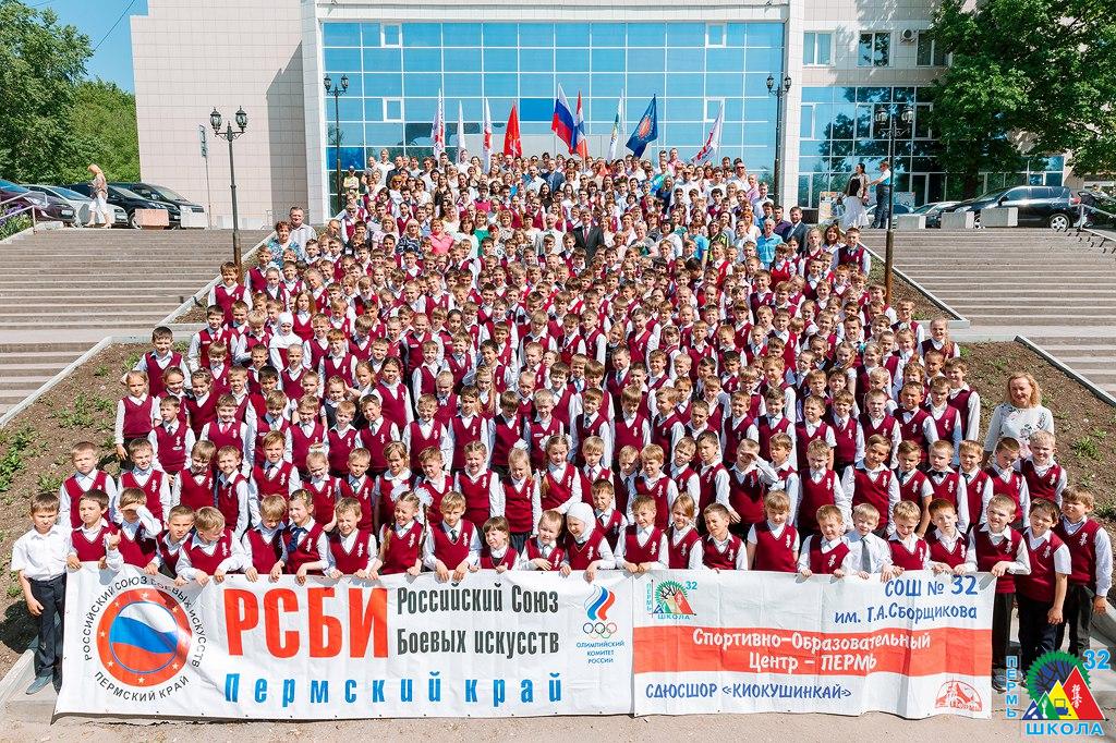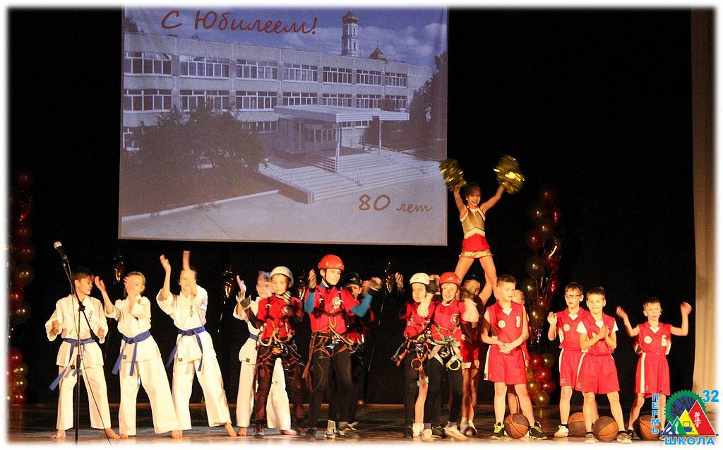 Под таким названием 1 декабря во Дворце молодежи прошел торжественный юбилейный вечер, посвященный 80-летию «СОШ № 32 им. Г.А. Сборщикова». Школу пришли поздравить почетные гости: заместитель министра образования Пермского края, начальник управления общего образования и воспитания детей Лариса Сергеевна Сидорова, депутат Пермской городской думы Александр Сергеевич Буторин, заместитель главы Ленинского района Оксана Валерьевна Полторак и бывший глава Ленинского района Иван Васильевич Воронов, директор СДЮШОР «Киокушинкай», президент Федерации киокусинкай Пермского края Юрий Афонасьевич Артюшков, главный тренер сборной России, вице-предизент федерации киокусинкайкан России Александр Николаевич Алымов, президент федерации бокса Пермского края, выпускник школы Петр Юрьевич Павлов, заместитель директора учебно-методического центра по ГО и ЧС Пермского края Михаил Александрович Манташев, руководители образовательных учреждений Ленинского района, ну и, конечно, педагоги, некогда работавшие в 32-й, педагоги-ветераны педагогического труда, выпускники и родители.