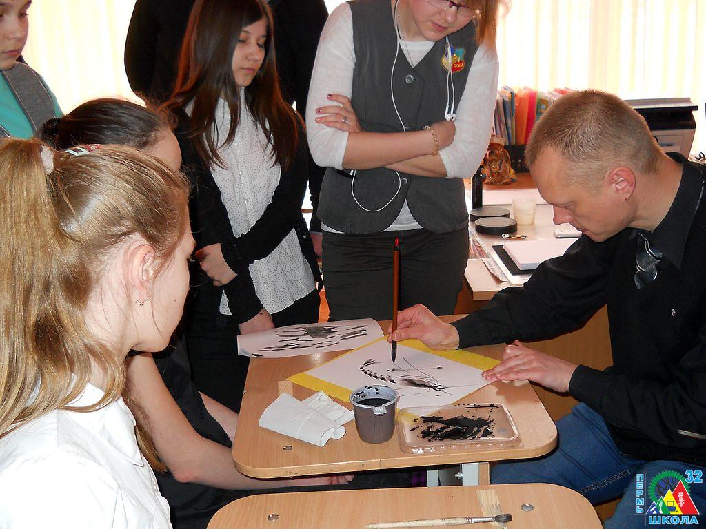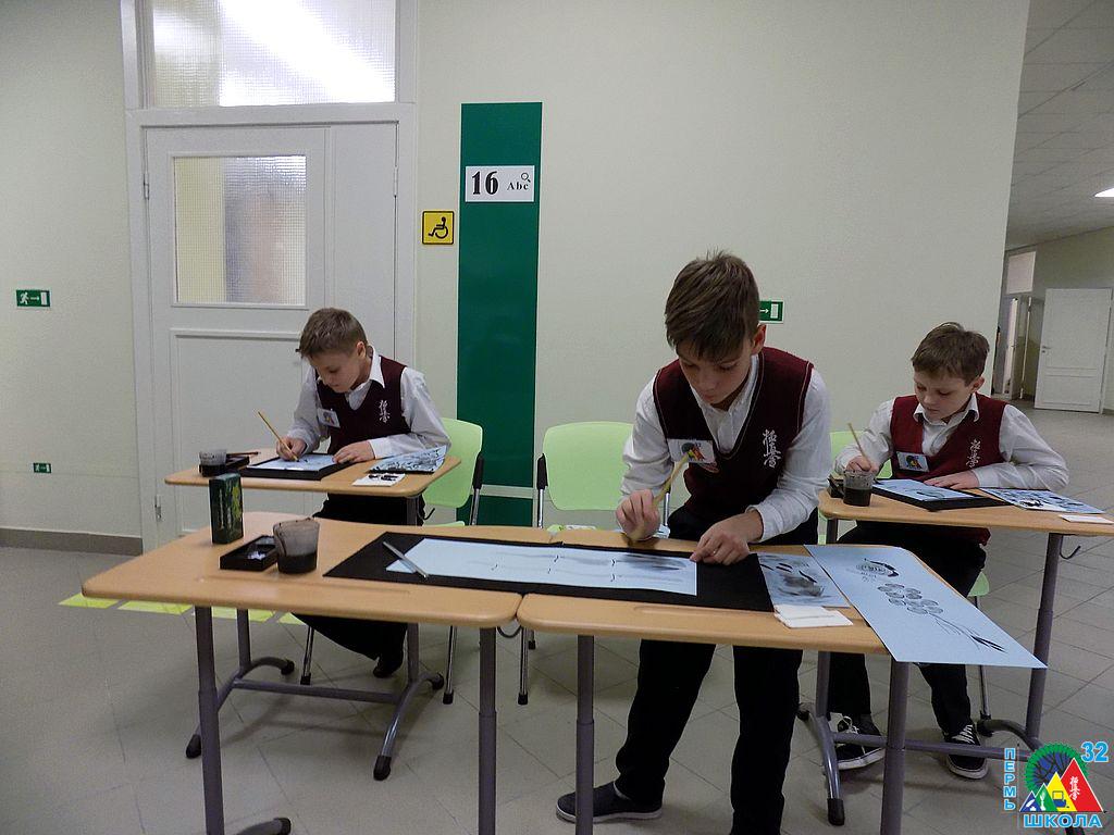 Воспитанники 5-х классов: Капралов Кирилл, Устинов Евгений, Кременевский Клим – демонстрировали искусство суми-э. Ребята делились знаниями о японской живописи, творили и дарили рисунки гостям.