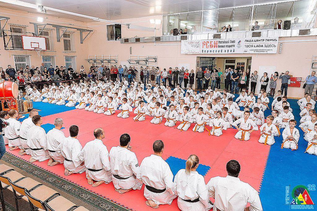 Мероприятие началось с общей фотографии, затем действие перенеслось в концертный зал Дворца. На открытии праздника звучали слова приветствий и поздравлений директора СДЮСШОР «Киокушинкай» Ю.А. Артюшкова и директора МАОУ «СОШ № 32 им. Г.А. Сборщикова» А.М. Гликсона.