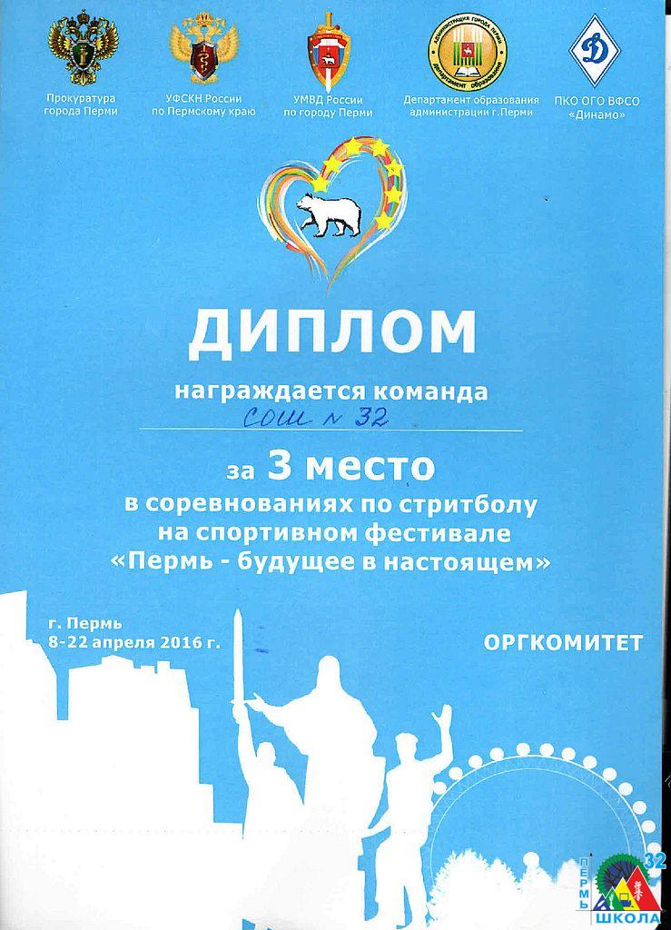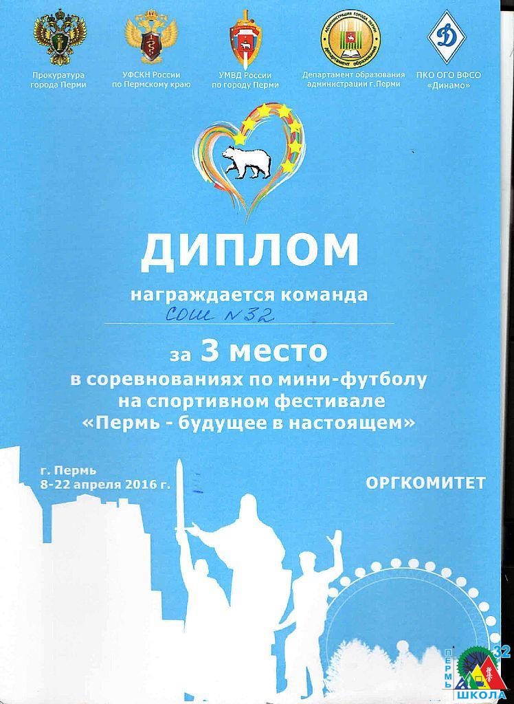В рамках программы по борьбе с употреблением наркотиков команда юношей нашей школы приняла участие в соревнованиях по стритболу и мини-футболу на городском фестивале «Пермь – будущее в настоящем» и заняла там почетное III место в каждой игре.