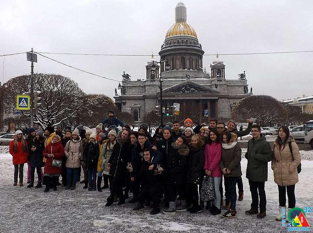 По окончании 1 триместра 47 учащихся школы № 32 отправились в увлекательное путешествие в незабываемый город Санкт-Петербург.