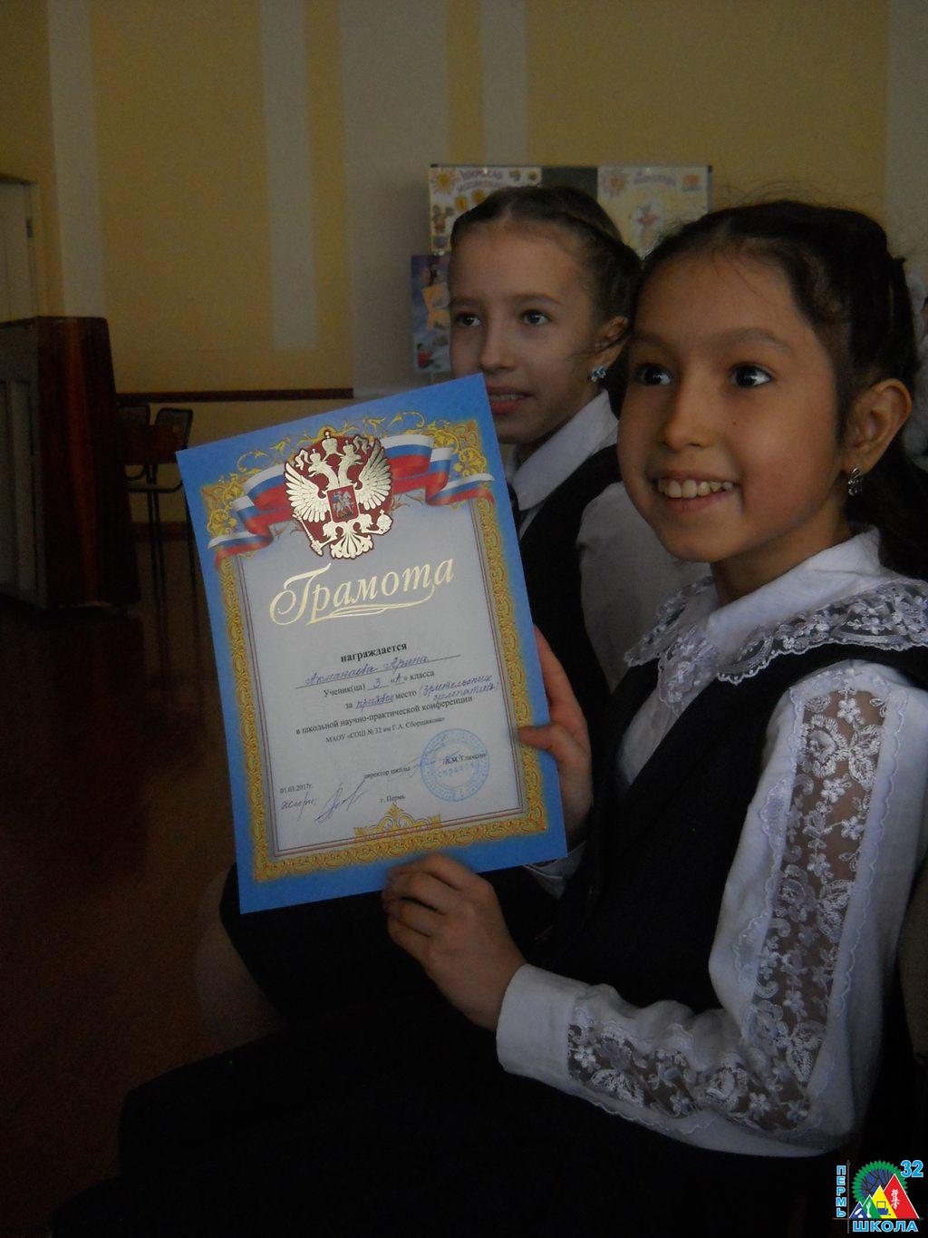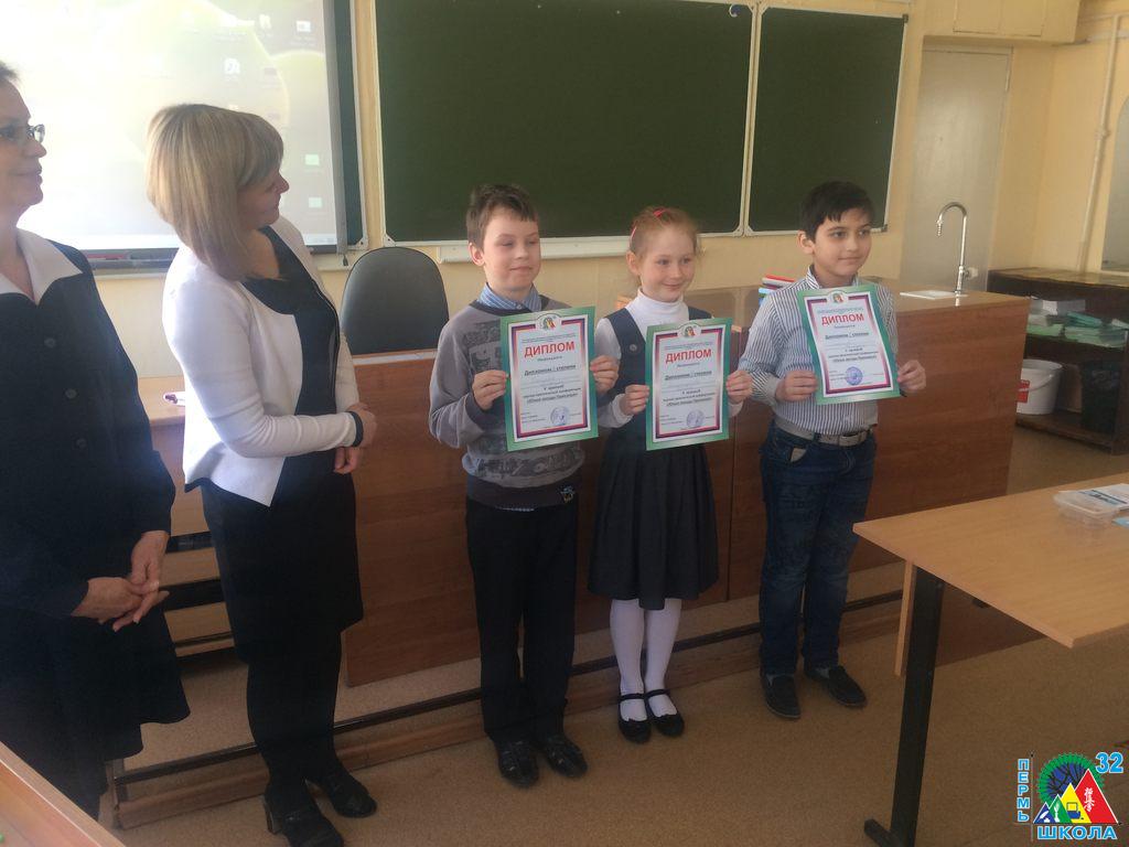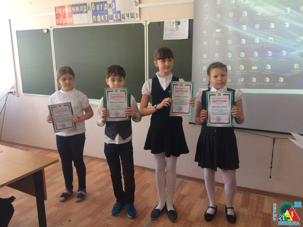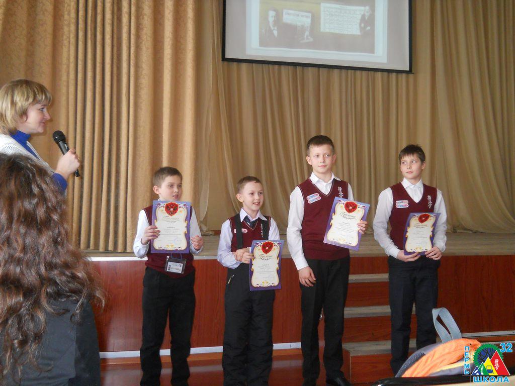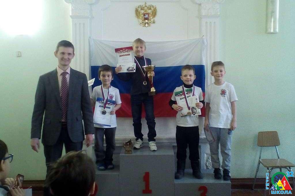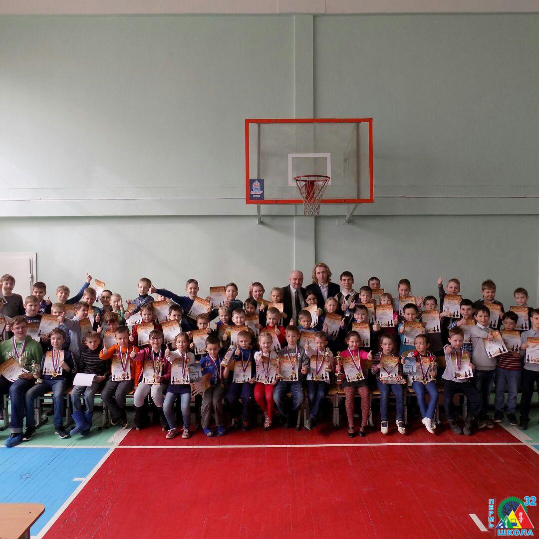 С 23 по 27 февраля 2017 года в Перми проходило Первенство Пермского края по шахматам среди мальчиков и девочек до 9 лет. Воспитанники школы № 32: Васильев Георгий, 1Г, Сивков Кирилл, 1Д, Чазов Денис, 1Д, Соколов Кирилл, 1Д и Тиунова Мария, 1Д выступили очень достойно. А двое даже заняли призовые места: Поломарь Александр, 1Д – 2 место, Воробьев Ярослав, 1Д – 3 место.