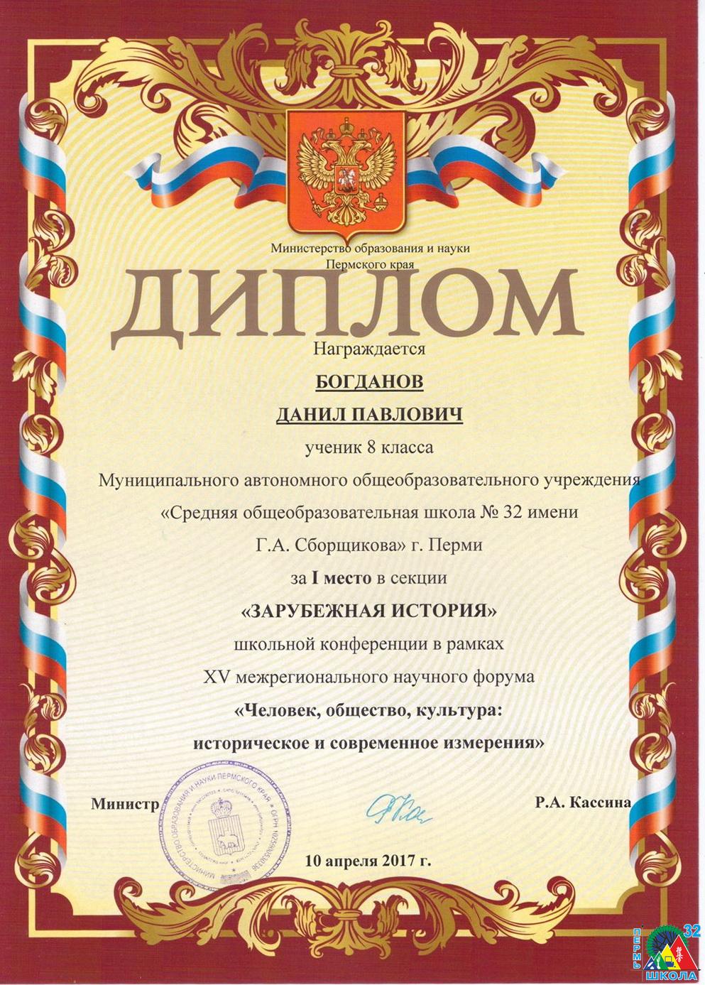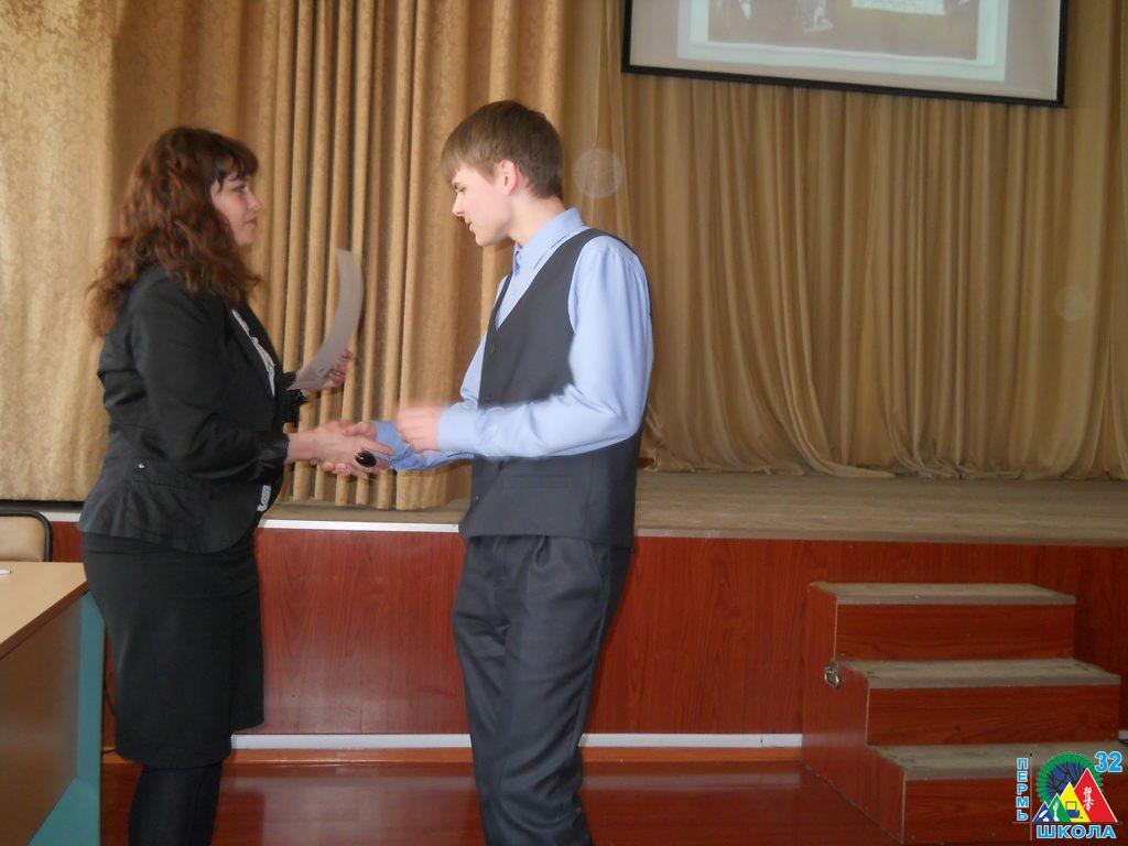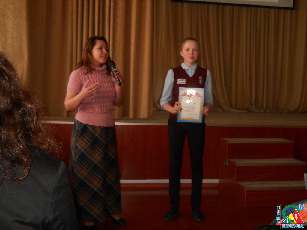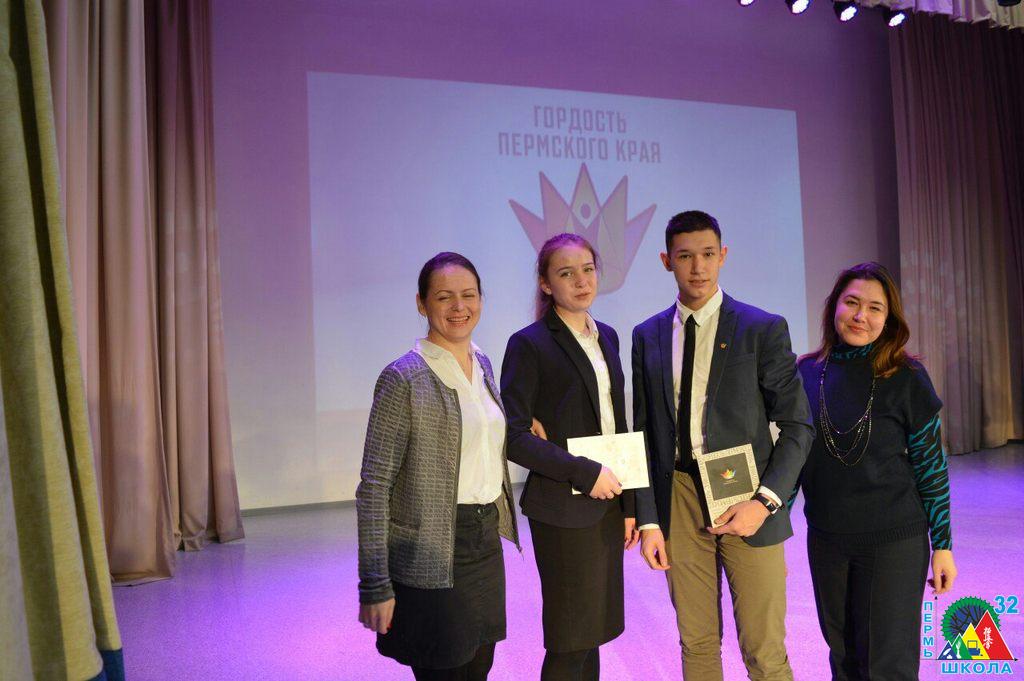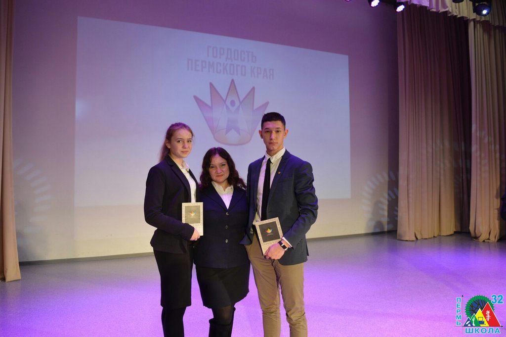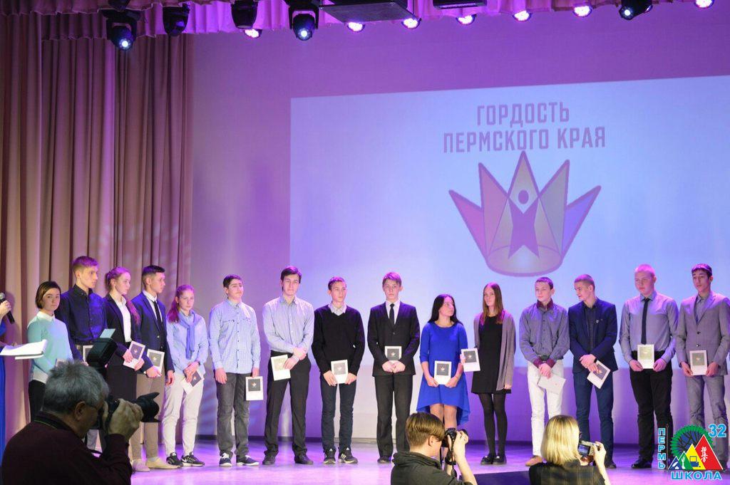 11 декабря в актовом зале ПГПУ состоялось вручение наград учащимся школ города за их выдающиеся достижения. В числе 76 призеров краевой программы удостоились знака отличия «Гордость Пермского края» ученики 10 С класса школы №32: Екатерина Веретенникова, Илья Окулов и Полина Федорова. Все трое школьников – спортсмены, победители различных турниров и первенств по каратэ киокушинкай: Первенства республики Татарстан(I место), Первенства России (I и III место), Первенства Приволжского Федерального Округа (I место). Поздравляем ребят с получением этого почетного знака и желаем дальнейших творческих успехов!