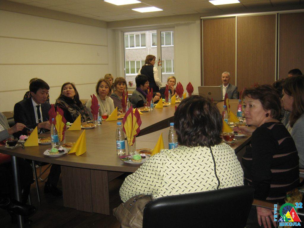 Представители педагогической общественности из республики Казахстан в количестве 15 человек посетили 13 декабря 2017 года нашу школу (в числе трех школ Перми). Для казахских коллег учителями школы и тренерами спортшколы каратэ была подготовлена насыщенная программа. П.В.Тяпугин и С.М.Болховитин показали педагогом занятия дополнительного образования: первый – по шахматам, второй – по японской живописи суми-э. Н.Г.Якупов провел открытую тренировку по баскетболу для учащихся 4-го класса, а тренеры СДЮШОР «Киокушинкай» Г.А. Алымов и Л.В.Рыбьякова – тренировки по каратэ киокушинкай, в том числе по мастерству владения нунчаками. Обмен опытом с коллегами прошел плодотворно и продуктивно.