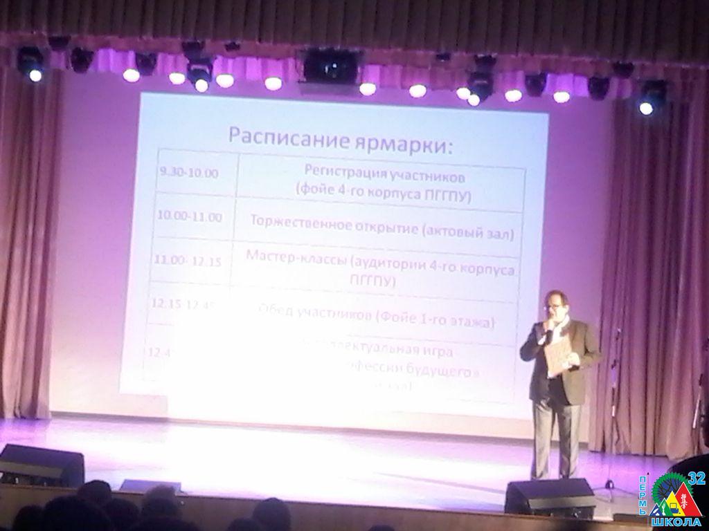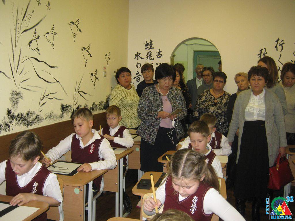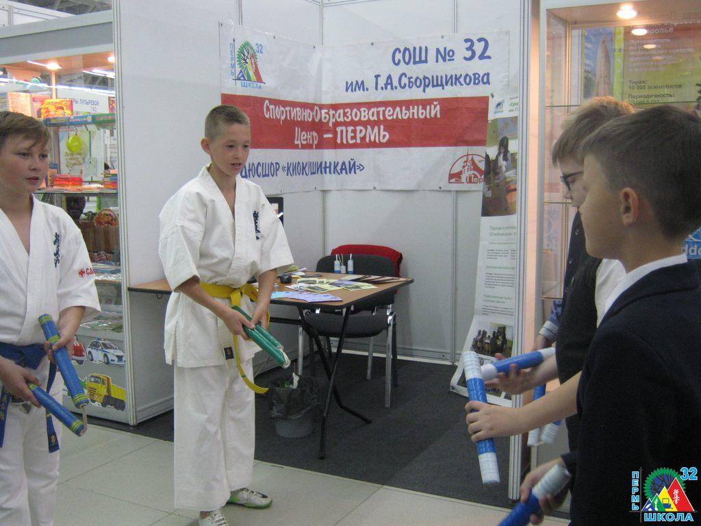 Выступление школы проходило в рамках работы экспозиции департамента образования администрации г. Перми, посвященной направлению «Школа и профессиональное сообщество». 32-я представляла свою «уникальную» сторону мастер-классами по нунчаку, суми-э (традиционной японской живописи), сердечно-легочной реанимации и противопожарной защите. Любой из посетителей мог попробовать себя «в деле», пообщаться со специалистом, получить информацию об основном и дополнительном образовании в школе.