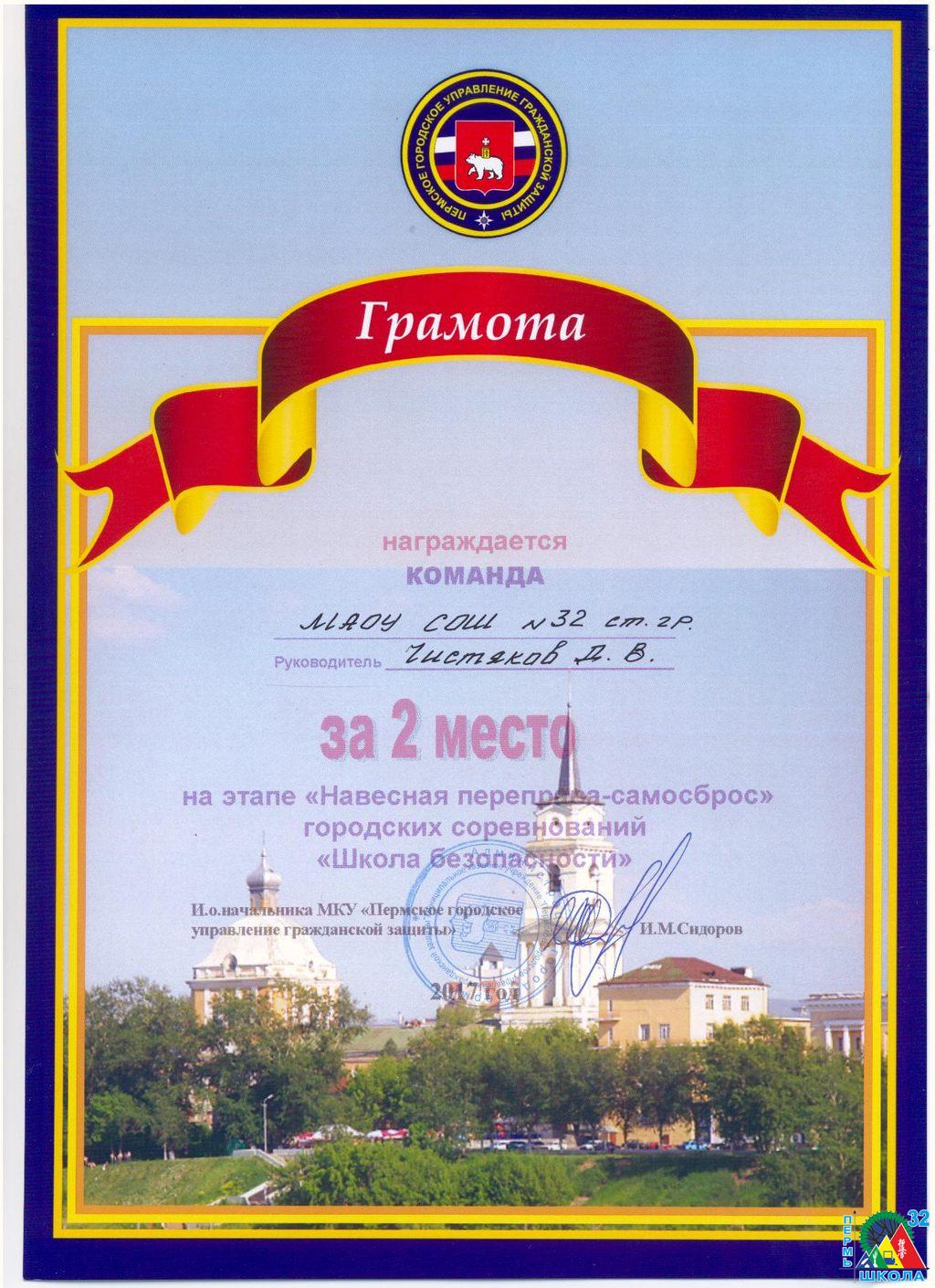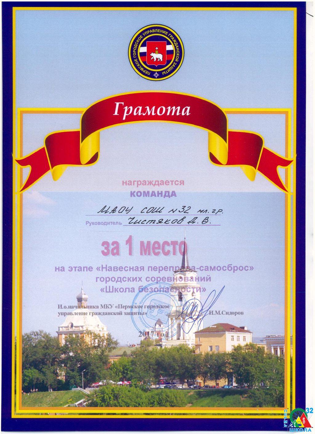 В новом корпусе школы №32 состоялись новое масштабное событие - гродские спортивно-патриотическая игра «Безопасный мир». В играх приняли участие команды 21 школы города. В каждой команде было 4 ребенка и один взрослый. Основную организационную работу провела школа №32, поучаствлвали и традиционные партнеры школы – спортивная школа «Киокушинкай», УМЦ по ГО и ЧС, Колледж олимпийского резерва, Главное управление МЧС по Пермскому краю, «Россоюзспас».