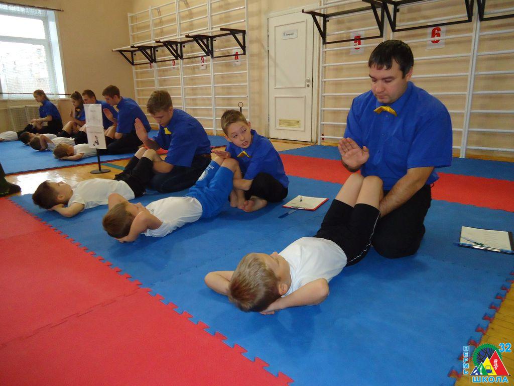 В программу первенства входили следующие испытания: прыжки на скакалке, прыжок в длину (три попытки), отжимания, демонстрация гибкости (наклоны вперед в шпагате), подъемы туловища (пресс), и подтягивания. Для обеспечения одномоментного прохождения испытаний работало десять одинаковых дорожек. Судейскую работу осуществляли тренеры и воспитанники СДЮШОР, среди которых тоже были учащиеся школы№32: Расим Мамедов, Роман Меньшов, Илья Окулов, Федор Сологуб и Полина Федорова. Несмотря на юный возраст и участников, и судей, соревнования проводились по всем правилам, так что опыт, который они получили на прошедшем первенстве, несомненно пригодится им в будущем.