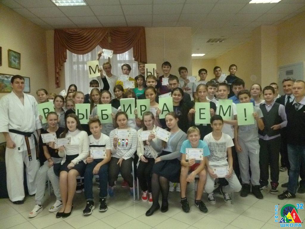 Учащиеся школы №52 приняли участие в масштабном событии, направленном на профориентацию. Событие получило название «Мы выбираем». Школа №32 традиционно организует и проводит для детей школ Перми такие мероприятия в рамках городского проекта «Уникальные школы». На этот раз учащиеся 7-9 классов школы №52 сделали выбор и пробовали себя в таких направлениях, как «Обучение основам японского языка и японской живописи суми-э», «Обучение основам киокусинкай-каратэ», «Обучение основам деятельности спасателя МЧС».