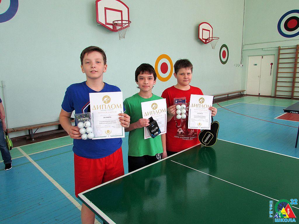 Две субботы подряд в школе проводились соревнования по настольному теннису. 7 октября в спортивном зале прошло первенство школы по настольному теннису среди учащихся 9-11 классов. 14 человек – 8 юношей и 6 девушек – боролись за звание лучшего теннисиста. Первое место среди юношей занял Илья Дряглев (9б), второе получил Никита Шабалин (9а), бронзу завоевал Антон Павлецов (9в). Среди девушек первый результат показала Екатерина Дикарева (9б), второе место заняла Радмила Тяло(9а), замкнула тройку лидеров Женя Калинина (9а). 14 октября решали определяли лучшего учащиеся среднего звена с 5 по 8 класс. В соревнованиях «Чемпион школы 32 по настольному теннису» среди мальчиков и юношей участвовало 16 человек. Золото завоевал Алексей Ившин (7б), серебро досталось Степану Леончикову (6в), третью ступень пьедестала занял Егор Лядов (6г).