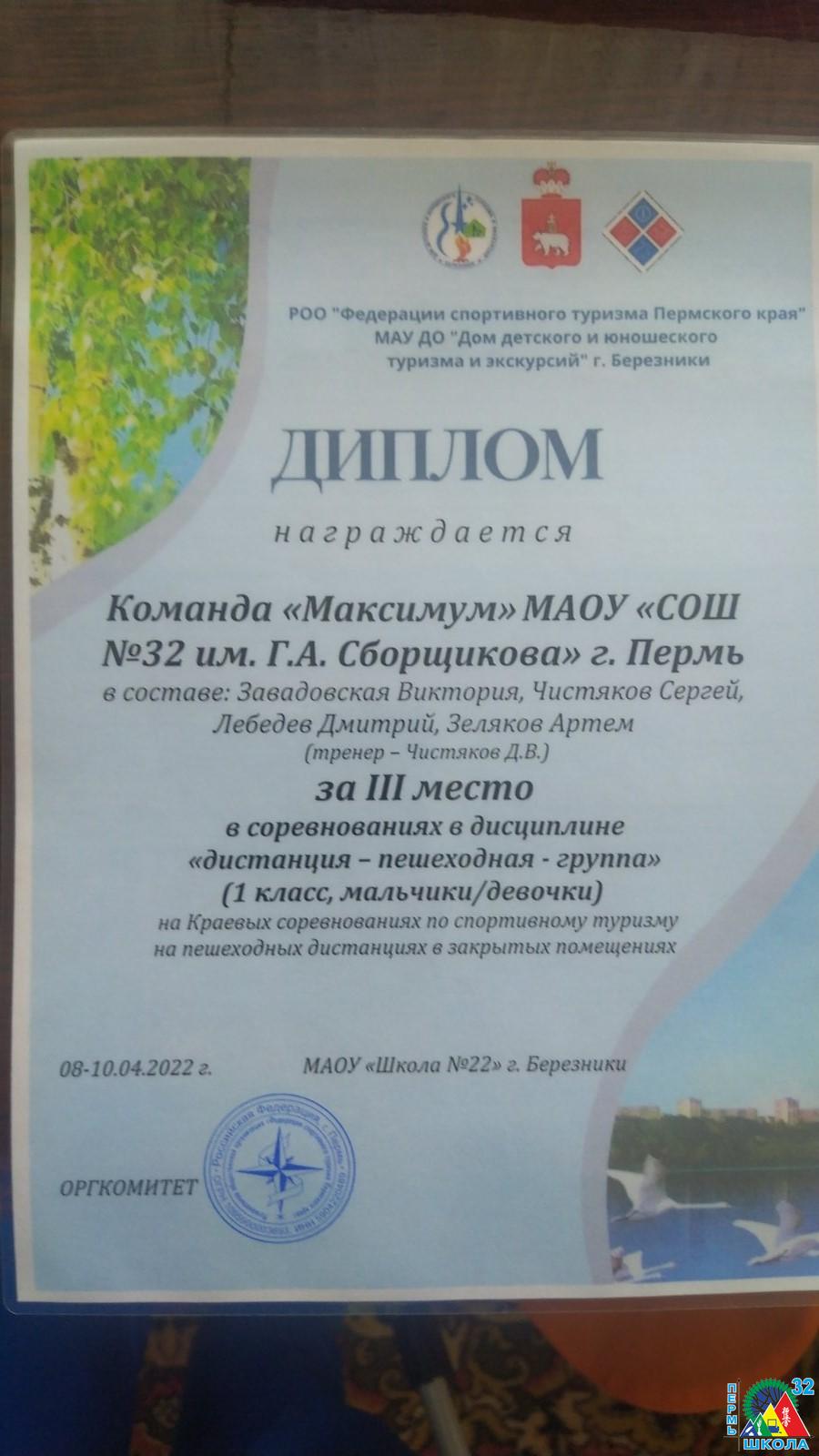 с 21 ноября — 23 ноября в спортивном комплексе МАОУ ДО « Центр дополнительного образования» п. Марковский, Чайковского округа , Пермский край, прошли открытые краевые соревнования «Кубок Прикамья» по спортивному туризму на пешеходных дистанциях (Финал) и Первенство Чайковского городского округа по спортивному туризму на пешеходных дистанциях «Новое поколение», которые завершили в этом календарном году успешную череду выступлений на соревнованиях разного уровня воспитанников 2Е и 4В спортивных классов и принесли много побед нашим детям.