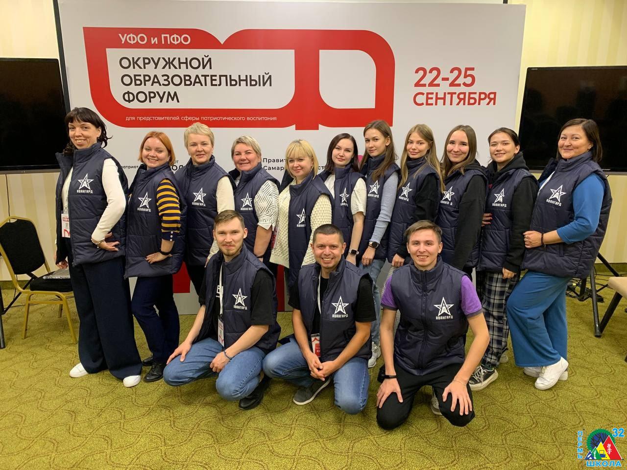 С 15 по 18 сентября 2022 года в г. Самара состоялся Окружной образовательный форум для представителей сферы патриотического воспитания Приволжского и Уральского федеральных округов. В состав делегации Пермского края вошла заместитель директора по воспитательной работе нашей школы Верзакова Юлия Станиславовна. На форуме были обсуждены важнейшие вопросы патриотического воспитания детей и молодежи, озвучены десять граней патриотизма, прошли презентации актуальных всероссийских проектов по патриотическому воспитанию, проведены интересные мастер-классы. Помимо лекций, семинаров, мастер-классов по направлениям Форума присутствующие обсудили Федеральный проект «Патриотическое воспитание граждан Российской Федерации» национального проекта «Образование».