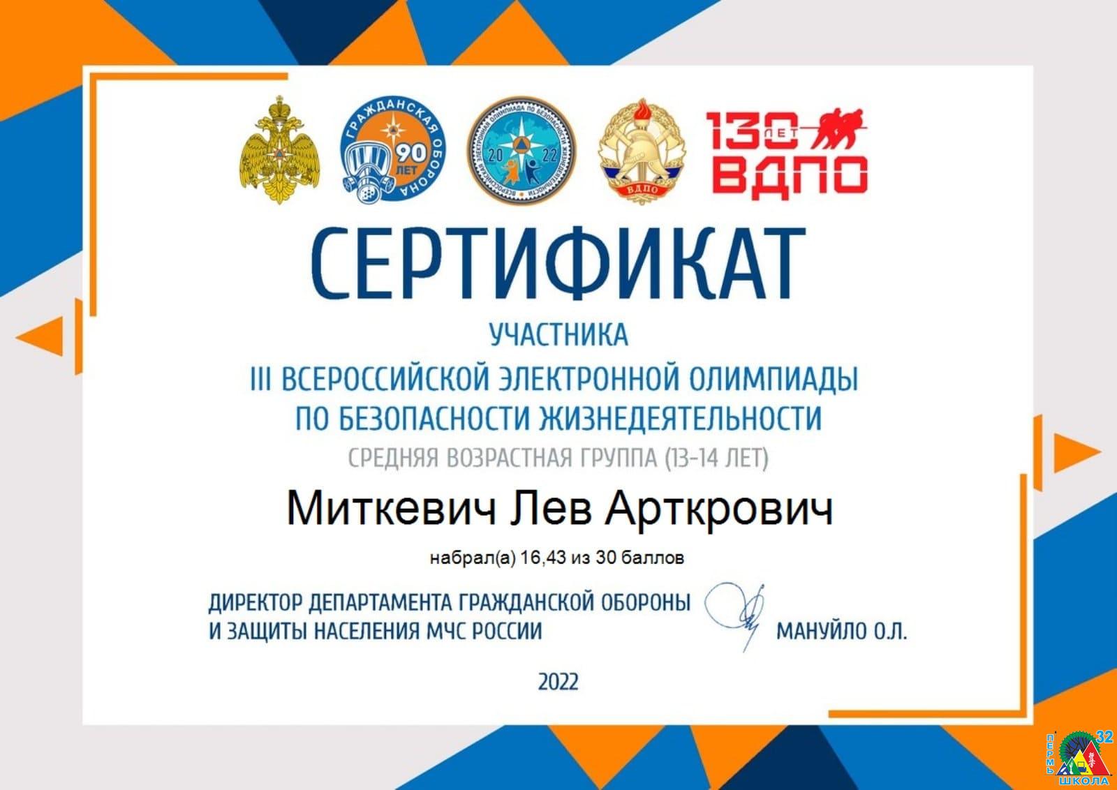 2 место - КРЕМЕНЕВСКИЙ Клим (11а, тренер Федоров А.Ю.)