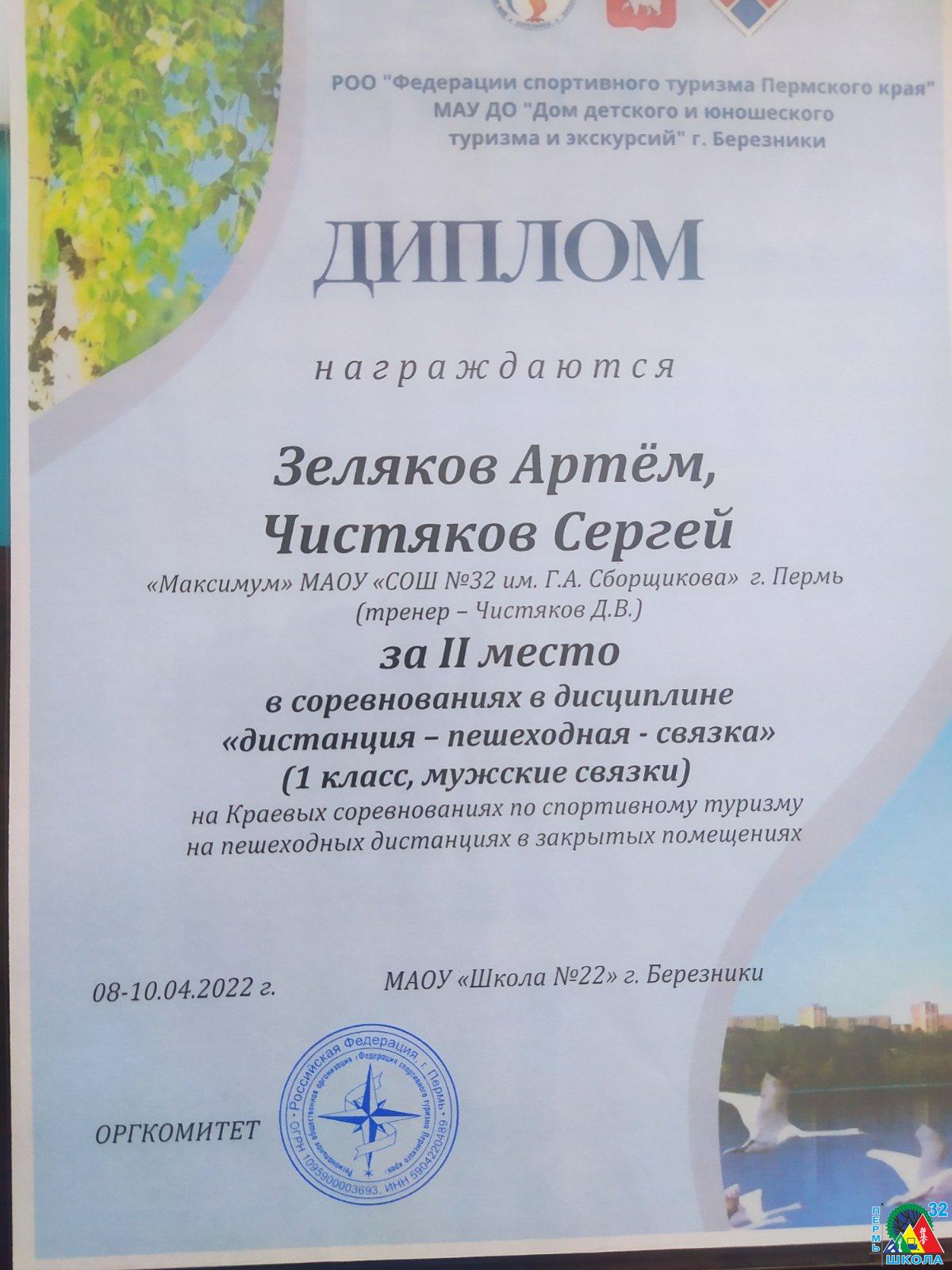 дистанция-пешеходная-связка-2 место Чистяков Сергей и Зеляков Артём;