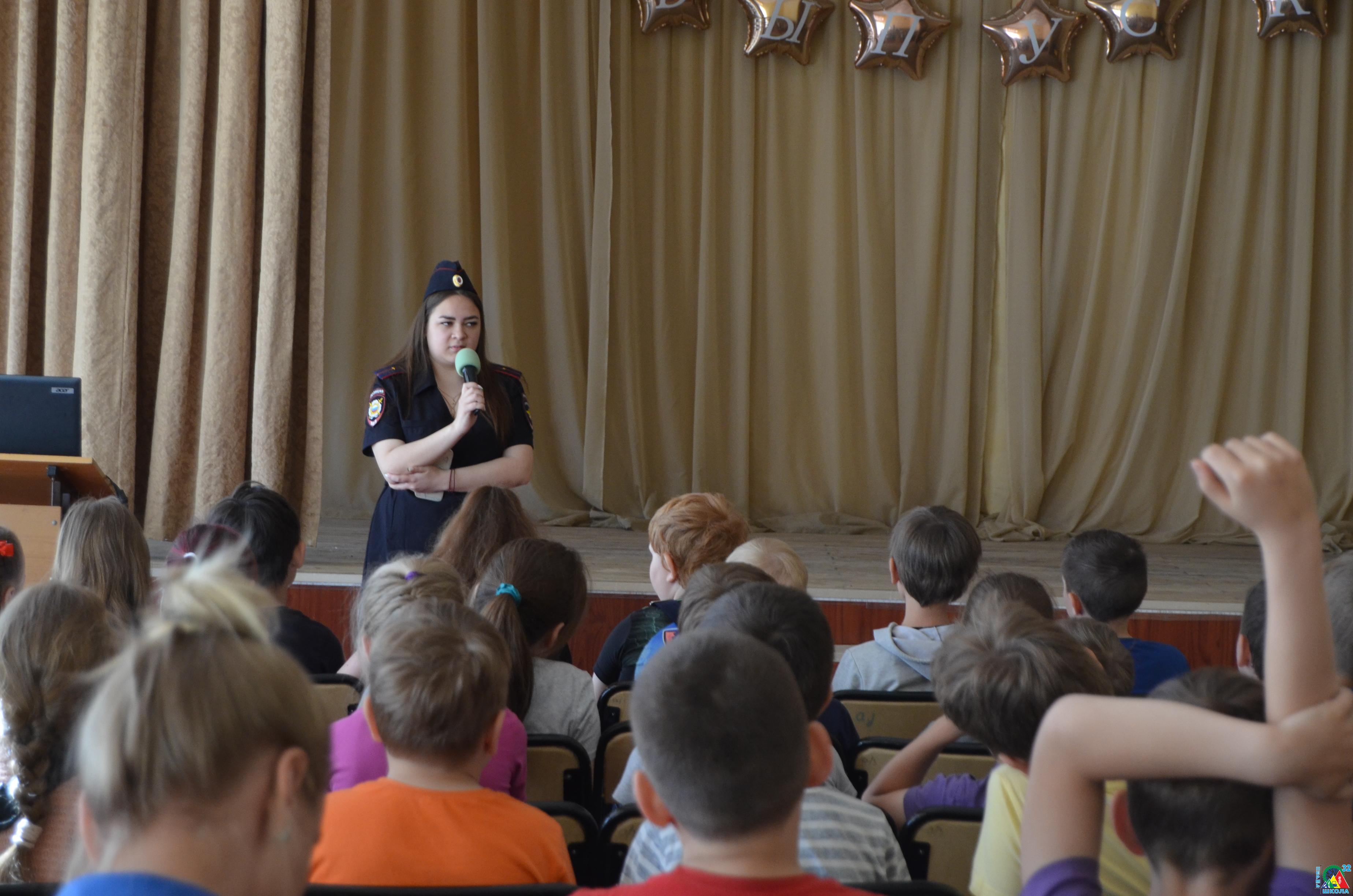 В этом году ребята вместе с ведущей (Кочкина Т.Н) отправились путешествовать по стране Светофории. На празднике их встретил Светофор Светофорович с Регулировщиком (Слобожанин Кирилл 8А) и самым настоящим инспектором дорожного движения Е.А. Зиангировой.