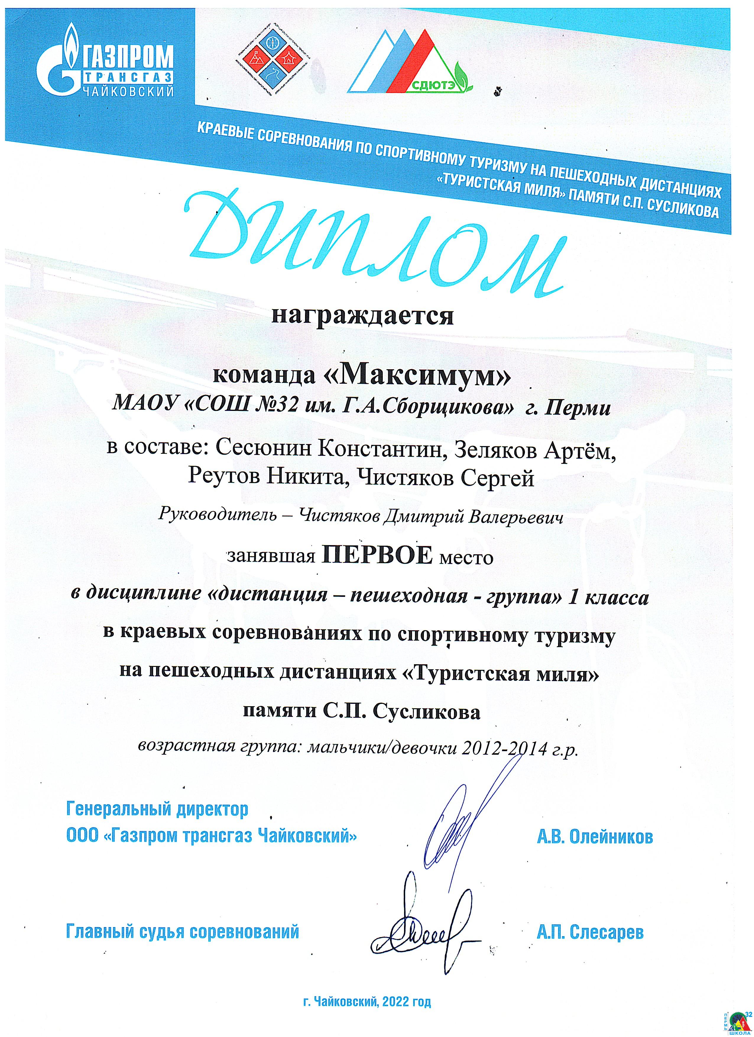 с 21 ноября — 23 ноября в спортивном комплексе МАОУ ДО « Центр дополнительного образования» п. Марковский, Чайковского округа , Пермский край, прошли открытые краевые соревнования «Кубок Прикамья» по спортивному туризму на пешеходных дистанциях (Финал) и Первенство Чайковского городского округа по спортивному туризму на пешеходных дистанциях «Новое поколение», которые завершили в этом календарном году успешную череду выступлений на соревнованиях разного уровня воспитанников 2Е и 4В спортивных классов и принесли много побед нашим детям.