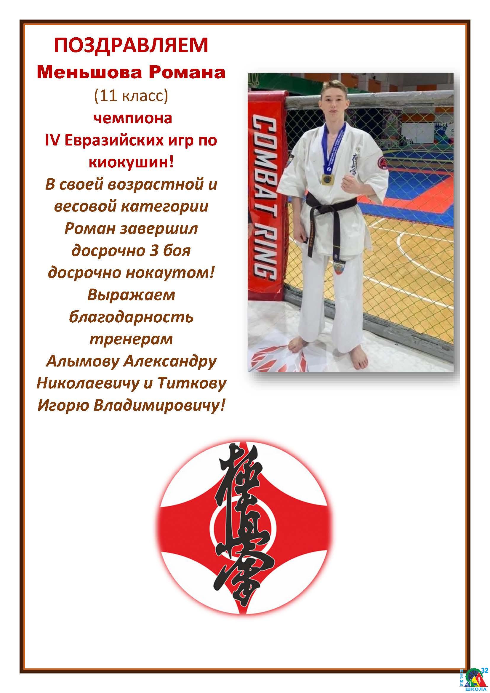 Приносим слова благодарности и поздравления тренерам-преподавателям СШ «Киокушинкай» Екатерине Павловне Кабак, Андрею Александровичу Фролову, Алексею Юрьевичу Фёдорову, Максиму Игоревичу Мещерякову , Станиславу Владимировичу Михайлову.